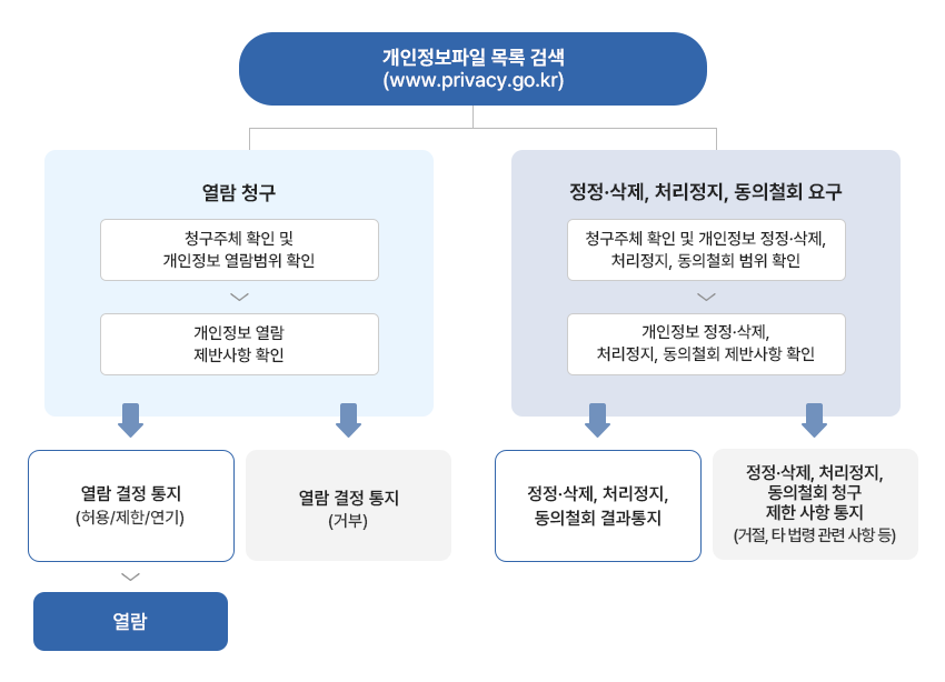 개인정보의 열람청구를 접수·개인정보 열람청구